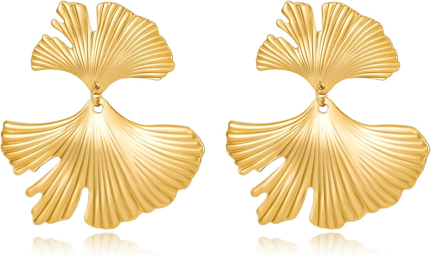 Gold/Silver Ginkgo Leaf Dangle Earrings for Women Statement Earrings Boho Plant Leaf Earrings Fashion Jewelry