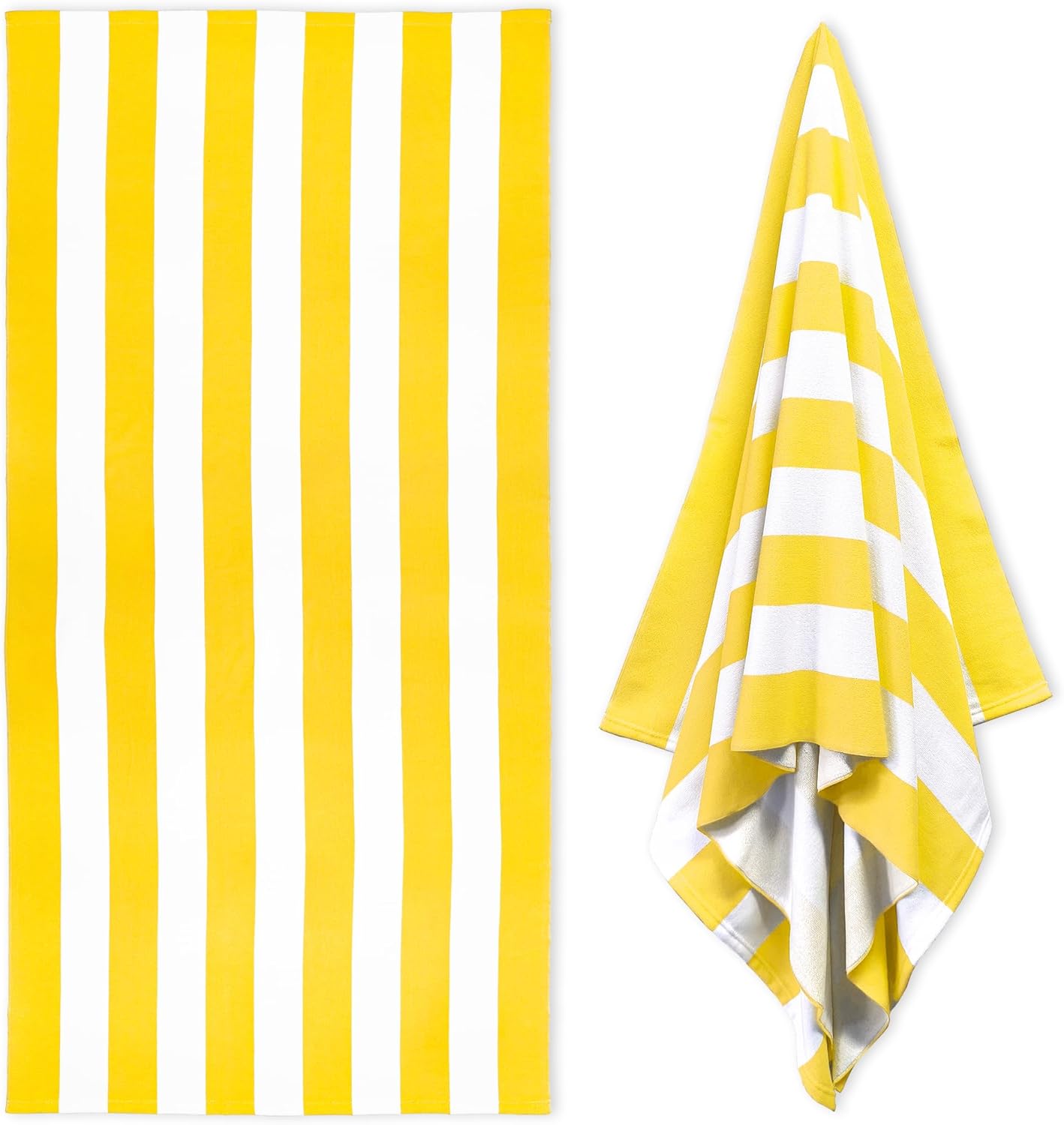 Large Oversized Beach Towel - 35 x 70 Inch Microfiber Pool Towel, Yellow Striped Quick Dry Cabana Swim Towel