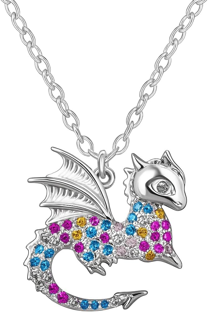 AlterImage Dragon Pendant Necklace Embellished w/Sparkling Aqua Blue Crystals & Comes with Jewelry Box, Great as Gifts