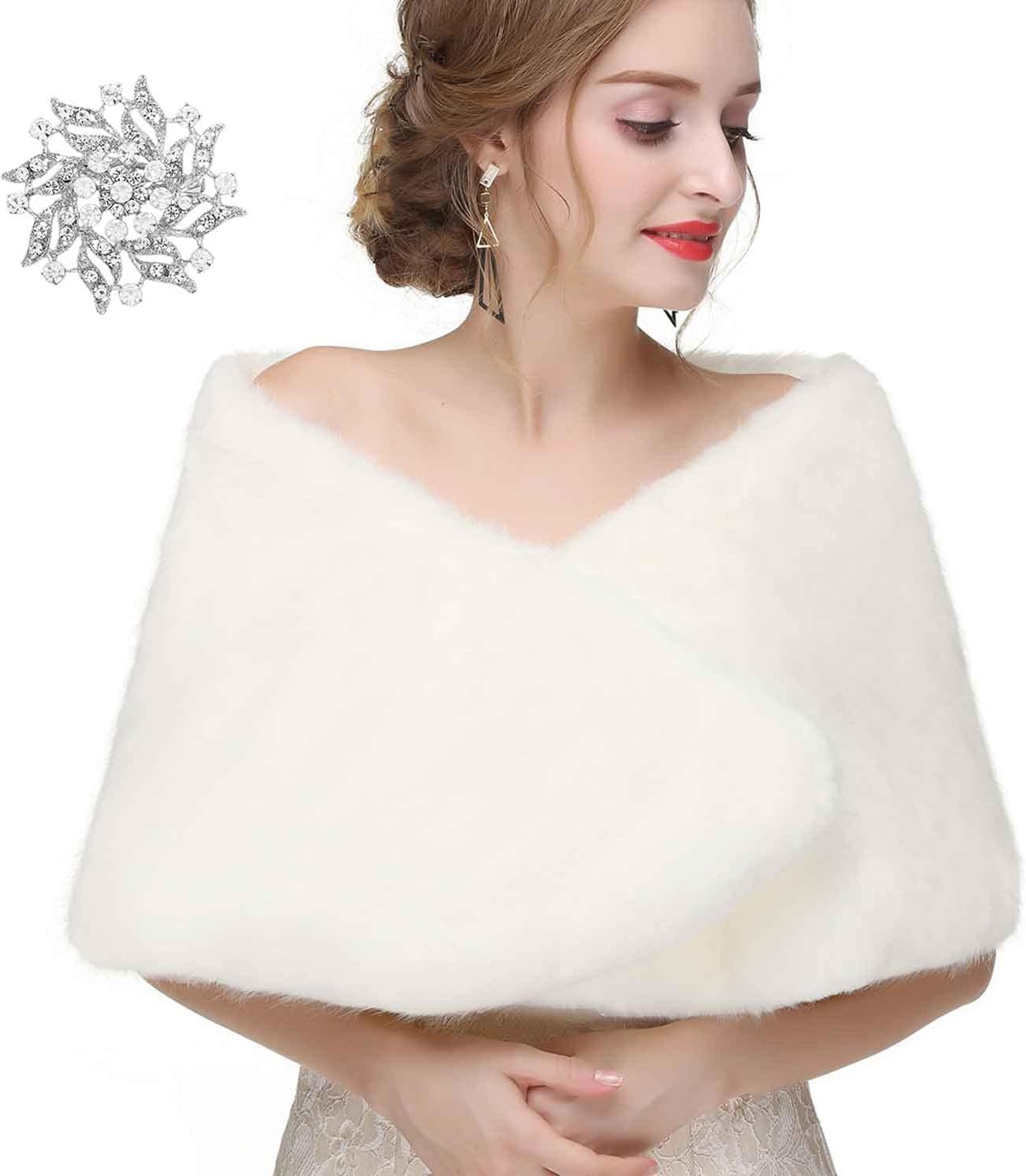 Women's Wedding Faux Fur Shawl Bride Fur Wrap Evening Dresses Faux Shrug for Bridal