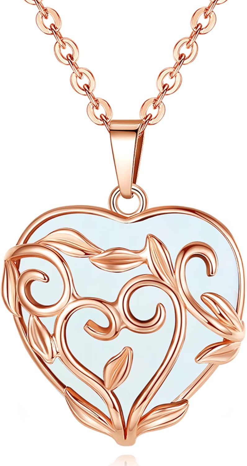 MAIBAOTA Opal Healing Crystal Necklace Flower Leaf Wrapped Heart Gemstone Pendant Necklaces Natural Stone Reiki Quartz Jewelry for Women
