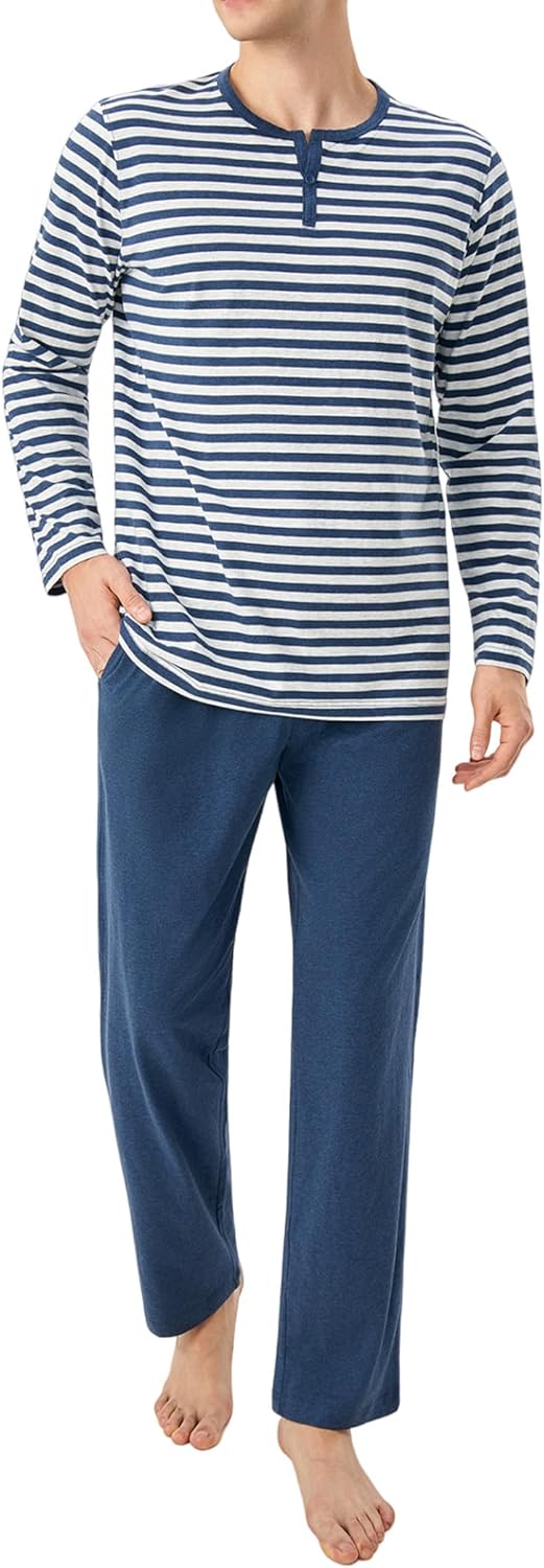 DAVID ARCHY Men's Pajamas Set 100% Combed Cotton Henley Loungewear Relaxed Fit Sleepwear with Pockets