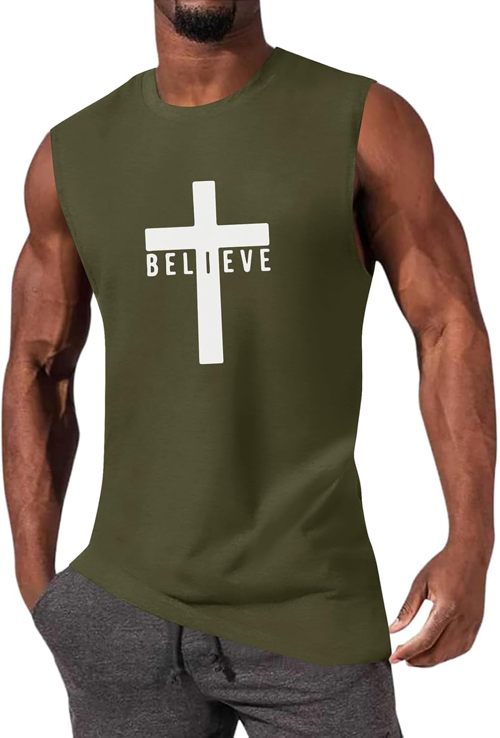 Men's Cotton Graphic Tank Tops Jesus Cross Believe Printed Faith Christian Shirts