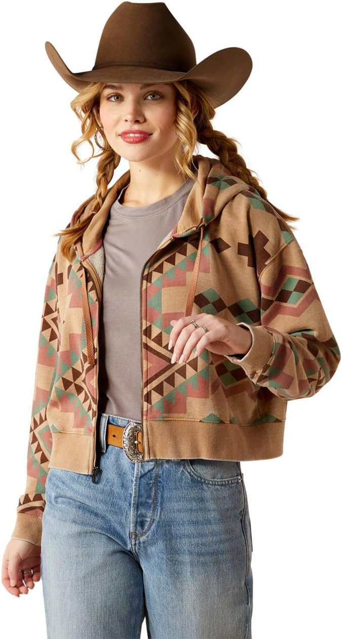 ARIAT Women's Sunset Spark Crop Hoodie, Spark Geo Print, Large