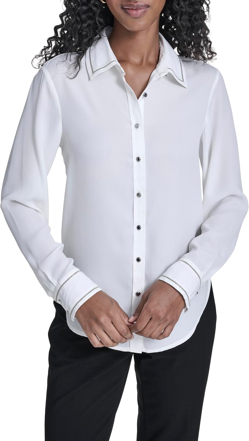 Calvin Klein Womens Long Sleeve Button Up Collared Blouse