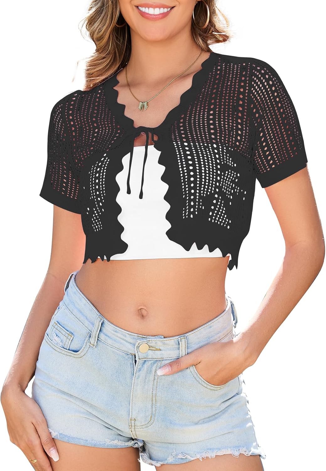 Durio Womens Cardigan Short Sleeve Tie Front Tops Lightweight Shrugs Cropped Crochet Sweater Summer Cardigans for Women 2025