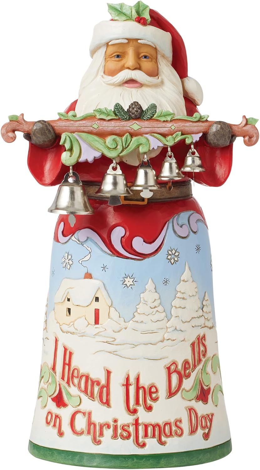 Enesco Jim Shore Heartwood Creek 18th Annual Song Series Christmas Day Santa with Bells Figurine- Stone Resin Hand Painted Crafted Collectible Santa Figurines Christmas Home Decor Statue, 10.04 Inch