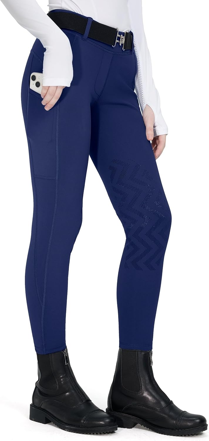 FitsT4 Sports Girls Winter Riding Breeches Kids Fleece Horse Riding Pants Knee-Patch Equestrian Schooling Tights Pockets