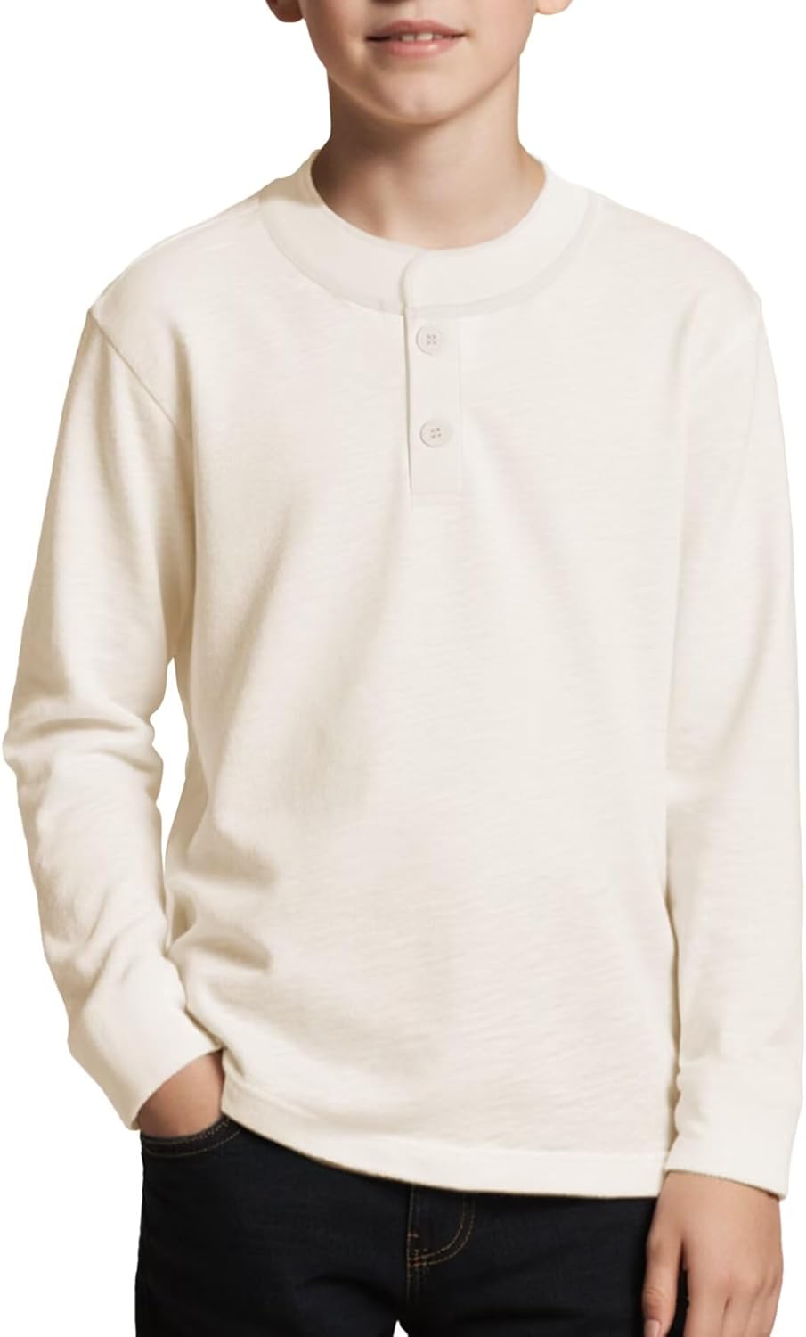 Boys Henley Long Sleeve Shirt Plain Triblend T-Shirt Crewneck Button Tee Fitted Casual Tops