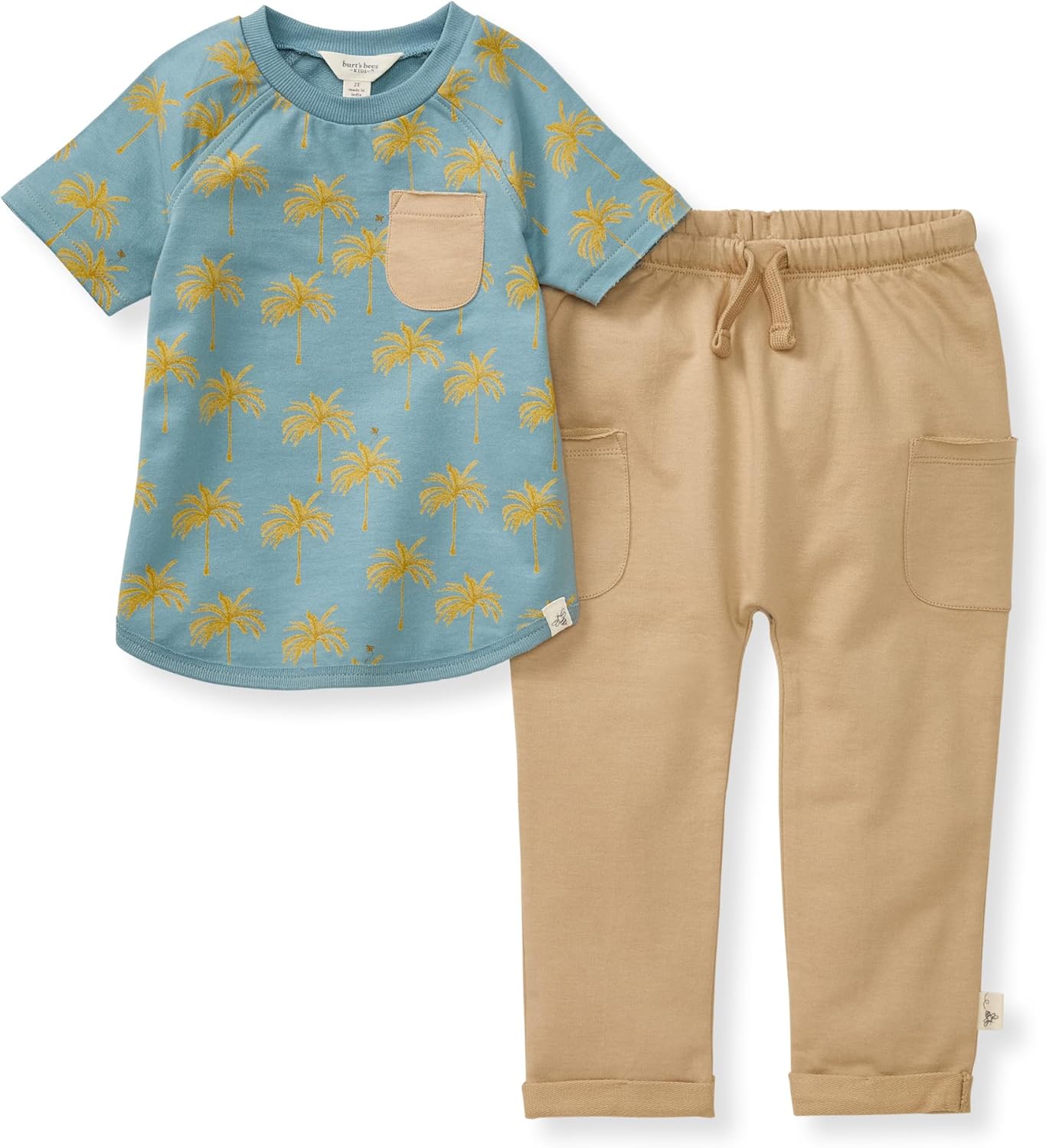 Burt's Bees Baby Baby Boys Short Sleeve Shirt and Pant Set, Top & Bottom Outfit Bundle, 100% Organic Cotton