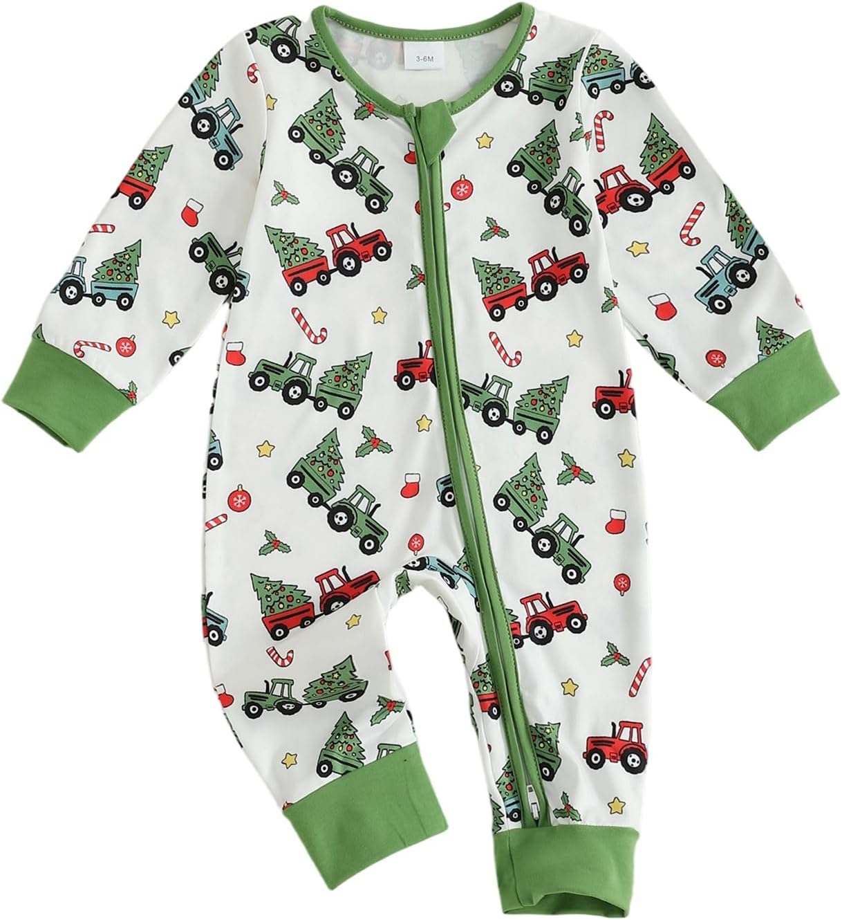 Newborn Baby Boy Girl Christmas Outfit Christmas Tree/Gingerbread Man Zipper Jumpsuit Romper Infant Fall Xmas Clothes