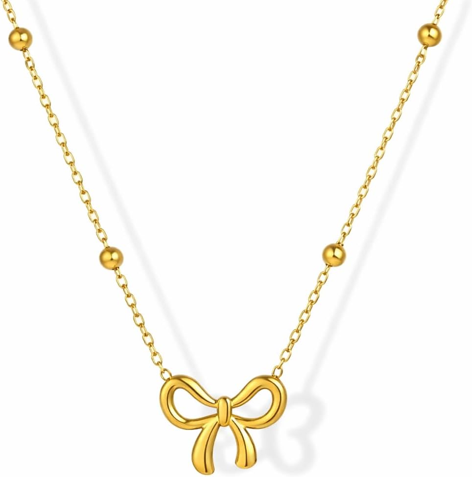 Pendant Snake Chain Necklace for Women gold trendy necklace for womens Dainty Cute Jewellery Minimalist Tarnish-Free Daily Wear Gift for Her Dainty Cute Jewelry gold trendy necklace (Gold Bow)