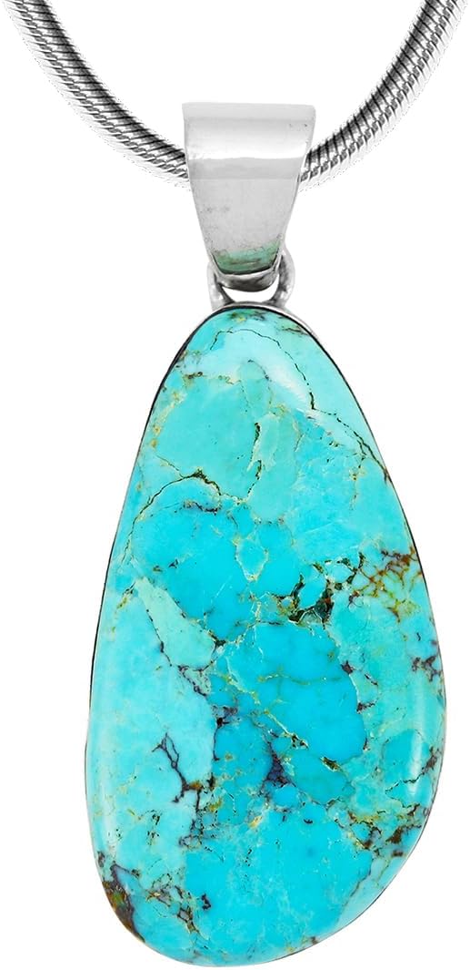 Turquoise Pendant Necklace Sterling Silver 925 (Sterling Silver Pendant with 20" Stainless Chain)