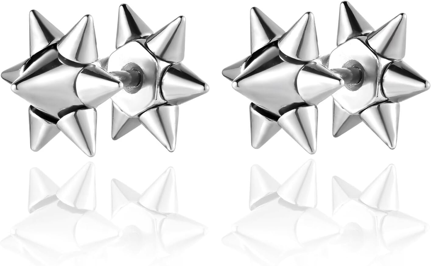 Hipster Spike Star Screw Stud Earrings for Men, Mens Punk Rock Emo Earrings Stainless Steel with Screw Back