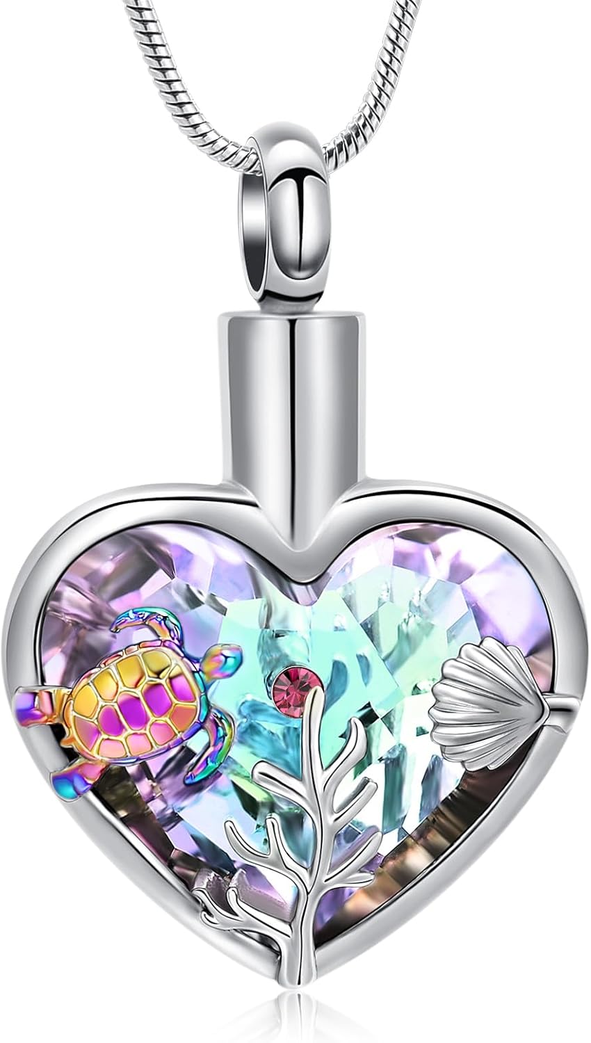 zeqingjw Sea Turtle Cremation Urn Necklaces for Ashes for Women Men Stainless Steel Urn Keepsake Jewelry Memorial Urns Pendant Jewellery for Pets/Human