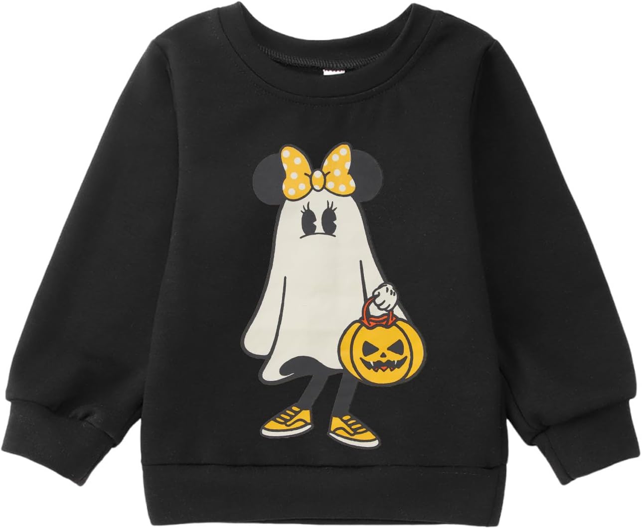 Toddler Baby Girls Halloween Sweatshirt Bowknot Ghost Pumpkin Long Sleeve Shirt Crewneck Pullover Spooky Season Top