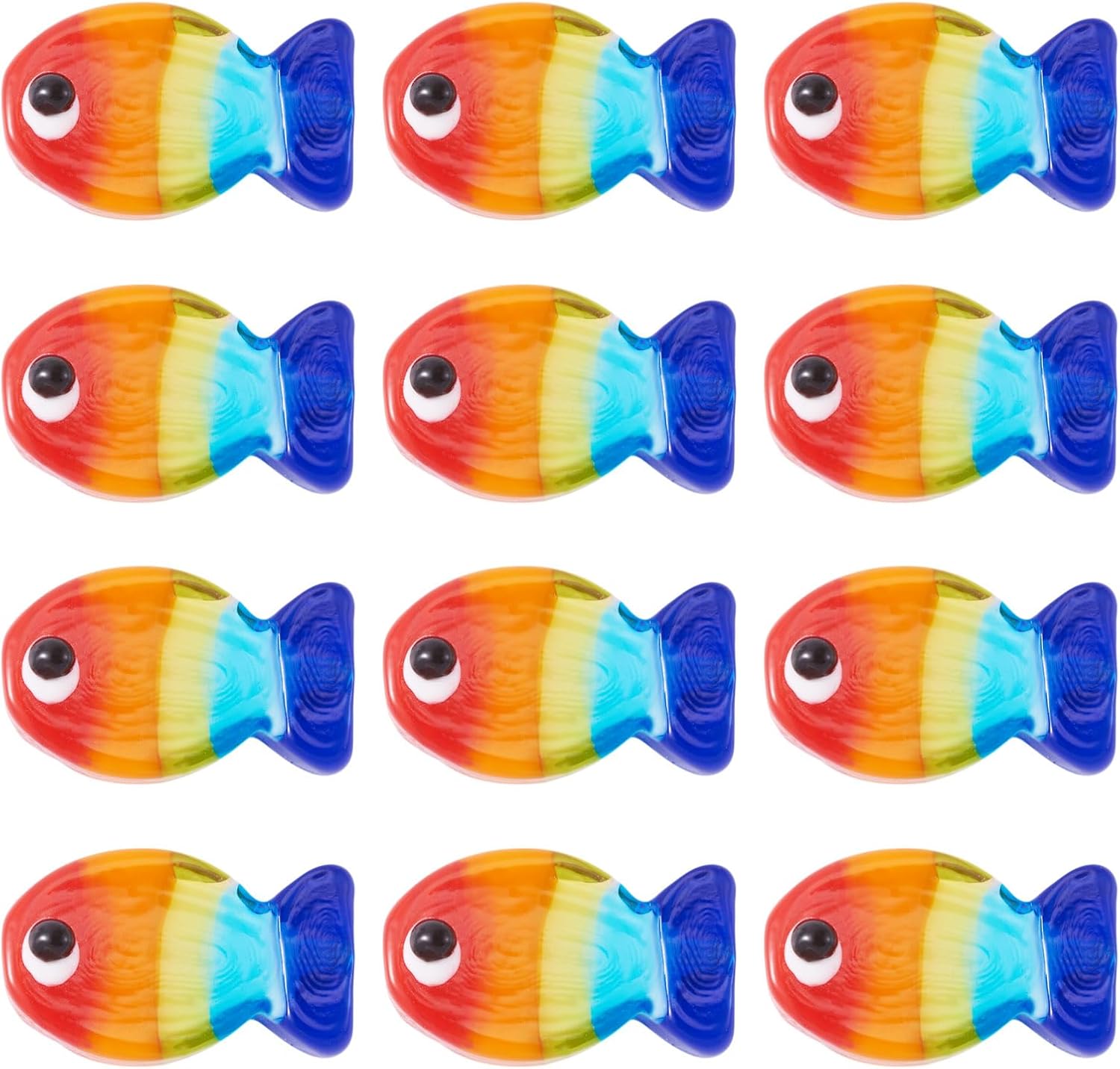Cheriswelry 12Pcs Fish Beads Handmade Lampwork Glass Beads Colorful Print Fish Loose Spacer Bead 20x13mm for DIY Summer Bracelet Necklace Earring Jewelry Making Ocean Beach Decor