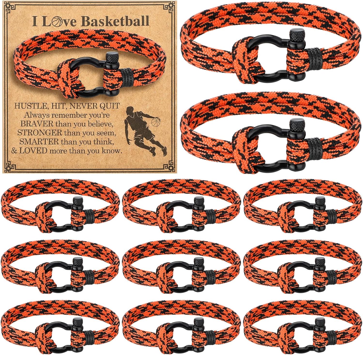 Tondiamo 12 Pack 2026 Senior Basketball Team Gifts Bulk Adjustable Woven Bracelets Bow Shackle Senior Night Basketball Gifts Sport Party Favors for Coach Player Teen Man Women Game Day