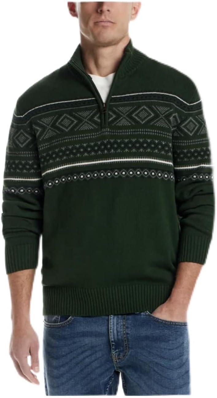 Weatherproof Vintage Men's 1/4 Zip Holiday Sweater (US, Alpha, Medium, Regular, Regular, Green)