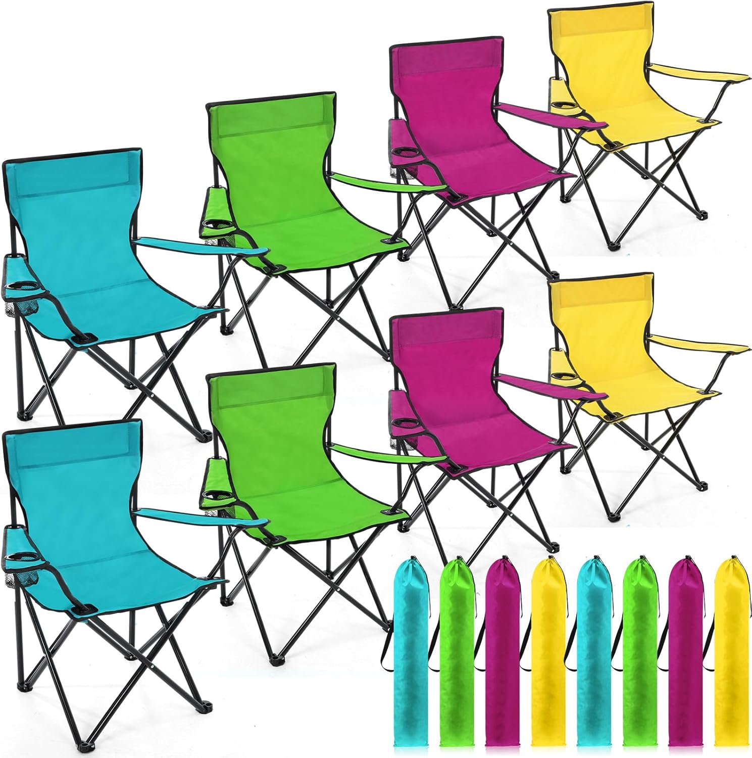 - You Will Get: 8 pieces of folding camping chairs with a size of approximately 20"L x 20"W x 31.5"H, capable of supporting up to 265 lbs of weight, soft and comfortable, suitable for adults; Each lightweight camping chair is equipped with a cupholder and carry bag; Bright colors bring you a good mood