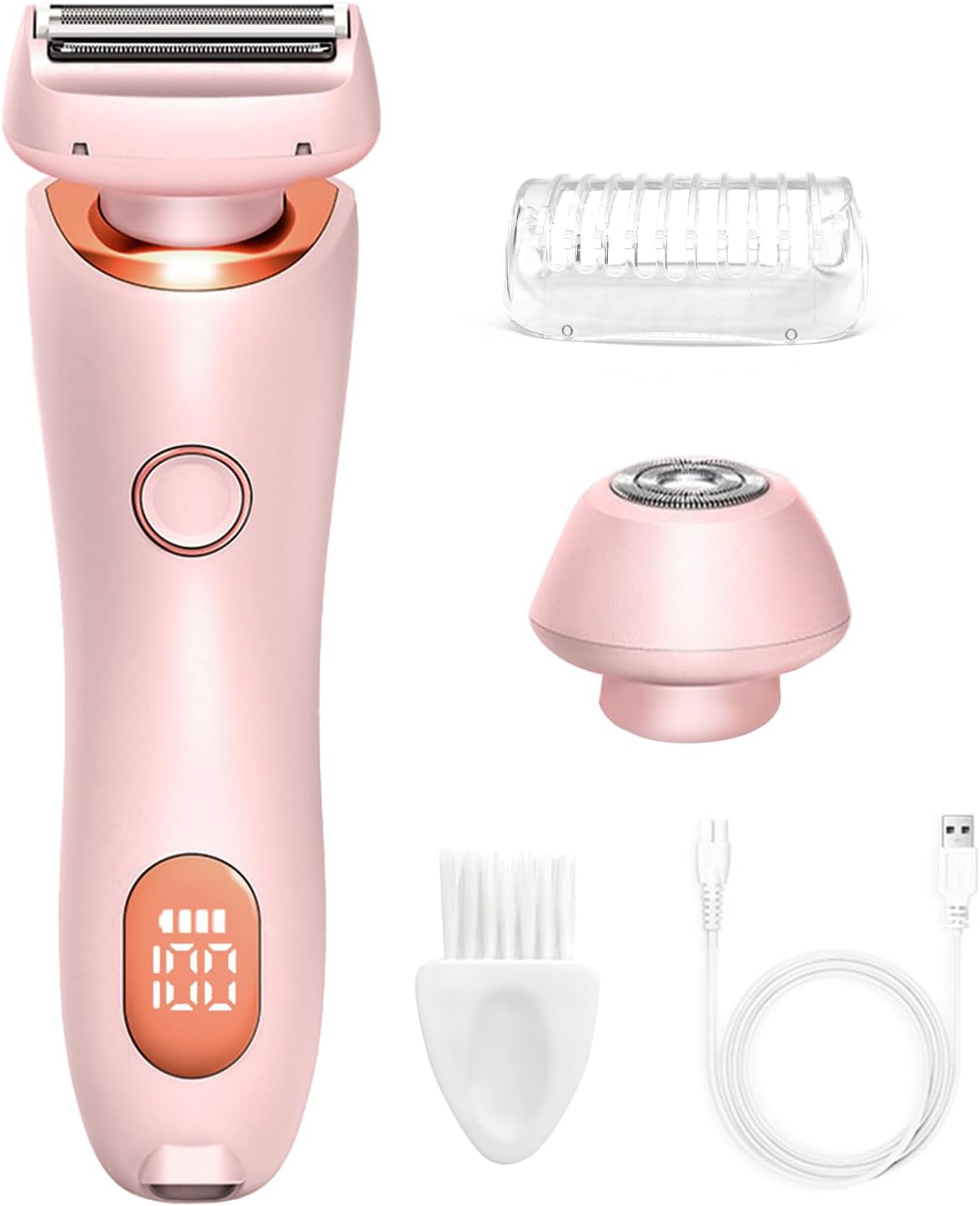Razor for Women,Shaver Glide Razor, 3.0 Electric Beauty Trimmer,Rechargeable, Portable and Free Exfoliating Glove(Pink)