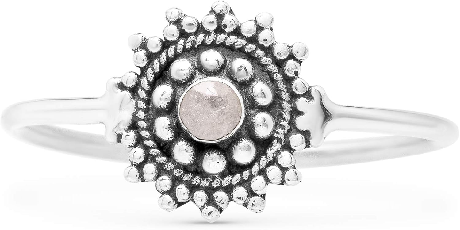 Moonstone Delicate Ethnic Round Ring 925 Sterling Silver Gipsy vintage Boho Chic Jewelry (6)
