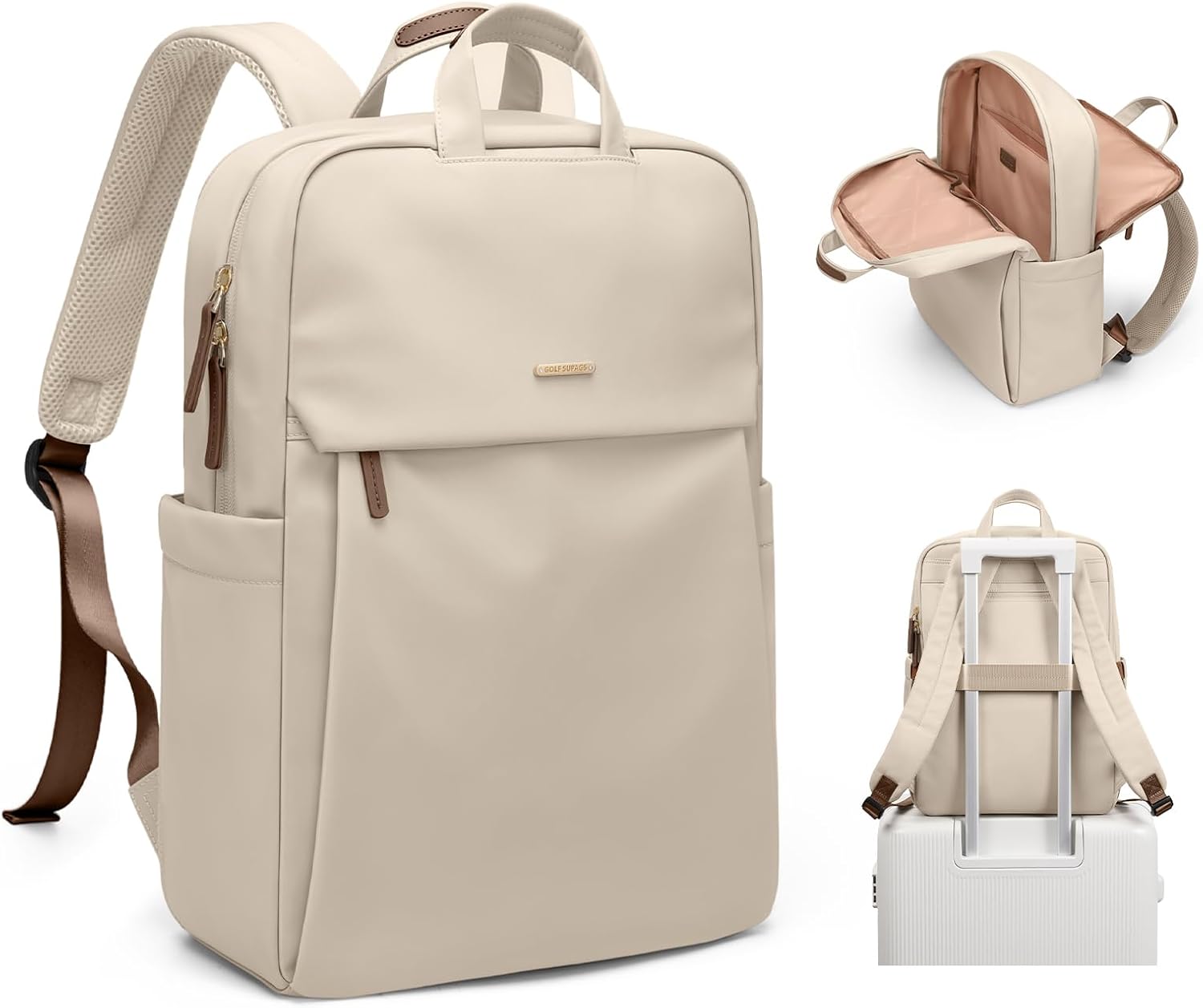 GOLF SUPAGS Women Laptop Backpack Fits 15.6 Inch Notebook Casual Daypack Everyday Bag for Work Travel College Backpack Book Bags (Apricot)
