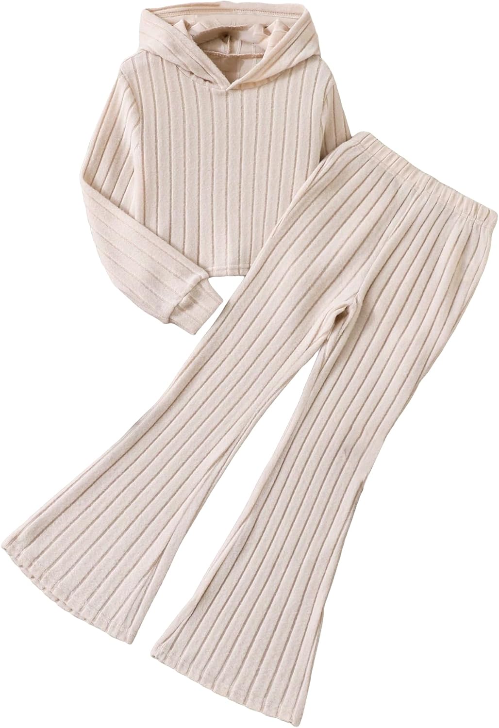 WDIRARA Girl's 2 Piece Outfits Hooded Long Sleeve Tee and Flare Leg Rib Knit Pants Set