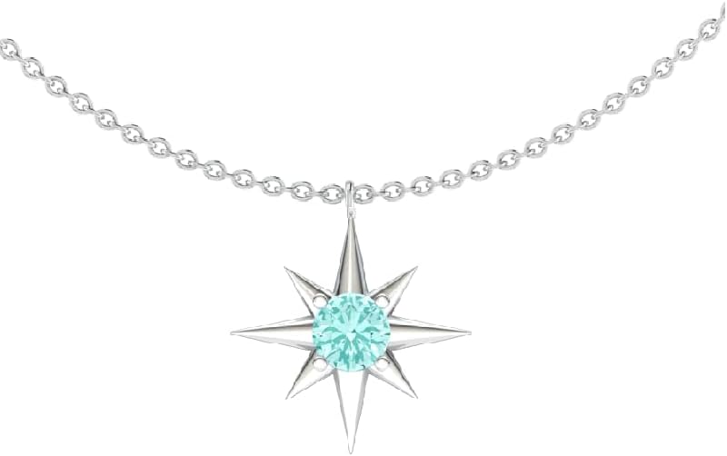 Sterling Silver North Star Pendant with a Birthstone, Birthstone Gift For Her, Silver Jewelry with 18 Inch Chain