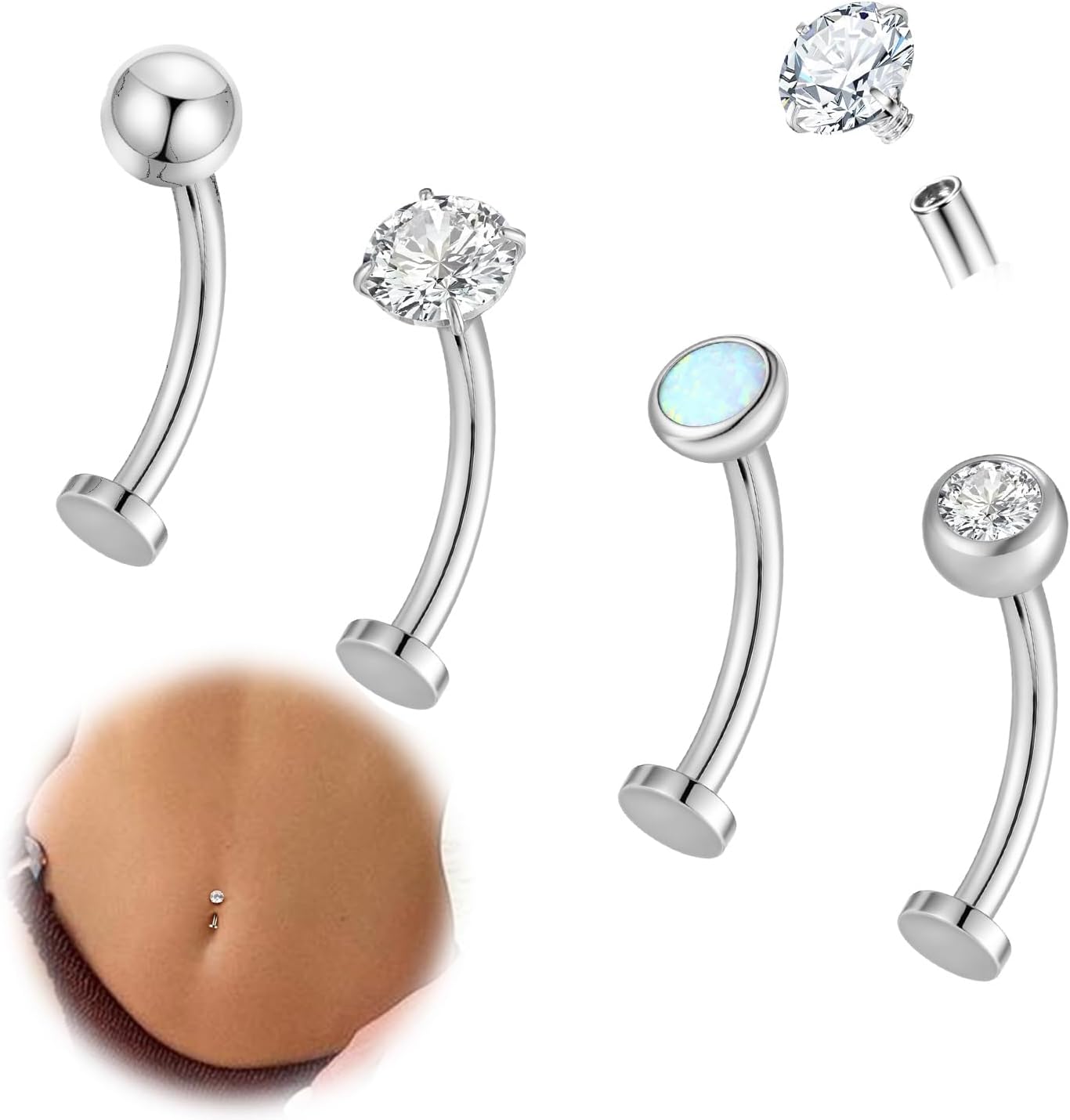 4 Pcs 14G Titanium Floating Belly Button Rings for Women Hypoallergenic Flat Back Belly Button Ring 8mm/10mm/12mm/14mm Internally Threaded CZ Navel Rings Piercing Jewelry