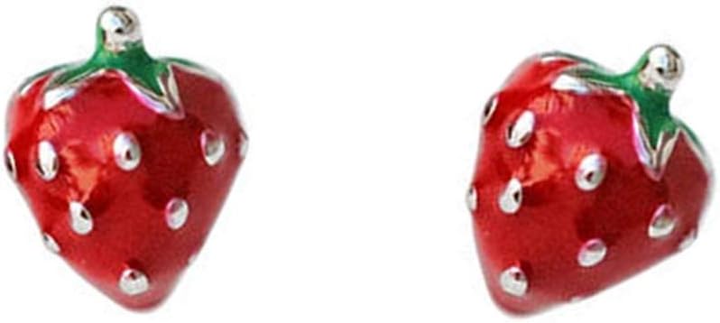 Cute Strawberry Fruits Earrings 925 Sterling Silver Small Stud Earring for Women Red Enamel Lifelike Luck Cartilage Tragus Post Hypoallergenic Dainty Jewelry Gifts Daughter Niece