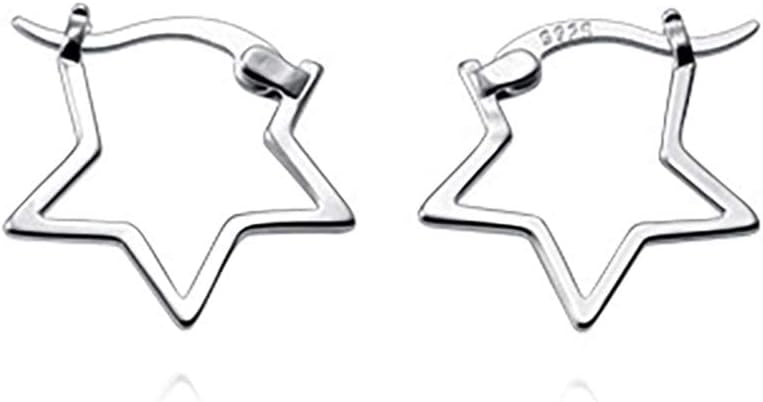 Reffeer Solid 925 Sterling Silver Minimalist Star Hoop Earrings for Women Teens Star Huggie Earrings Hoop