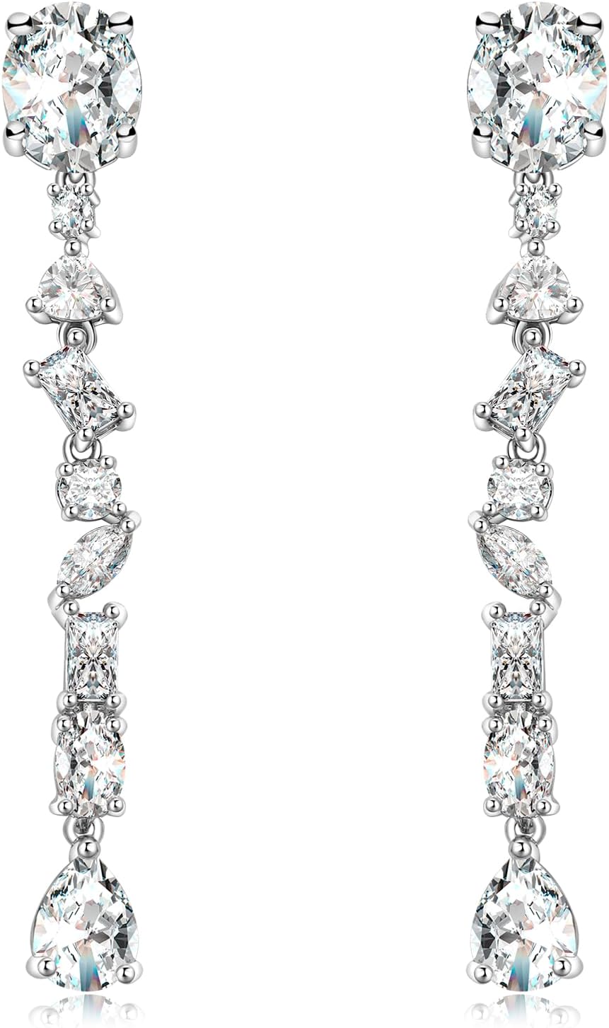 Long Crystal Dangle Earrings for Women Wedding Bridal Colorful Rhinestone Cubic Zirconia Drop Earrings for women Mom Wife