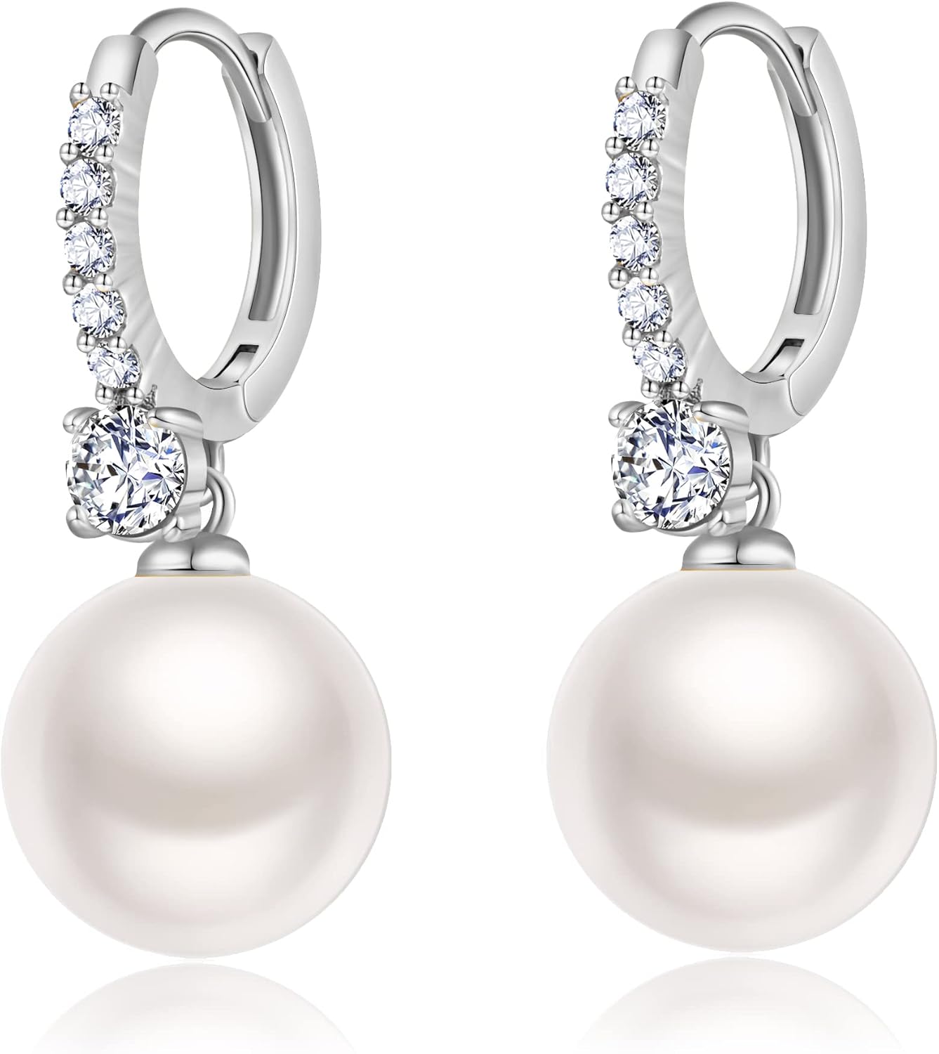 RITACH Small Pearl Earrings for Women 925 Sterling Silver Plated White Gold Dangle Drop Earrings Cubic Zirconia Pearl Drop Earrings