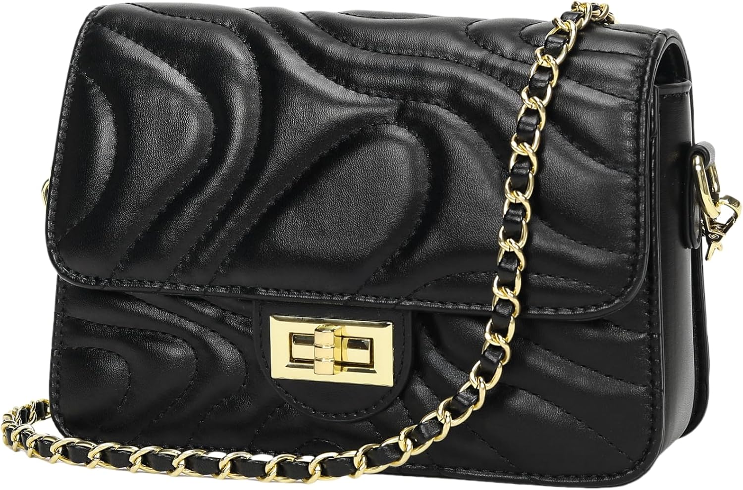 Small Quilted Crossbody Purse for Women Trendy Ladies Shoulder Bag PU Leather Satchel HandBag with Chain Strap