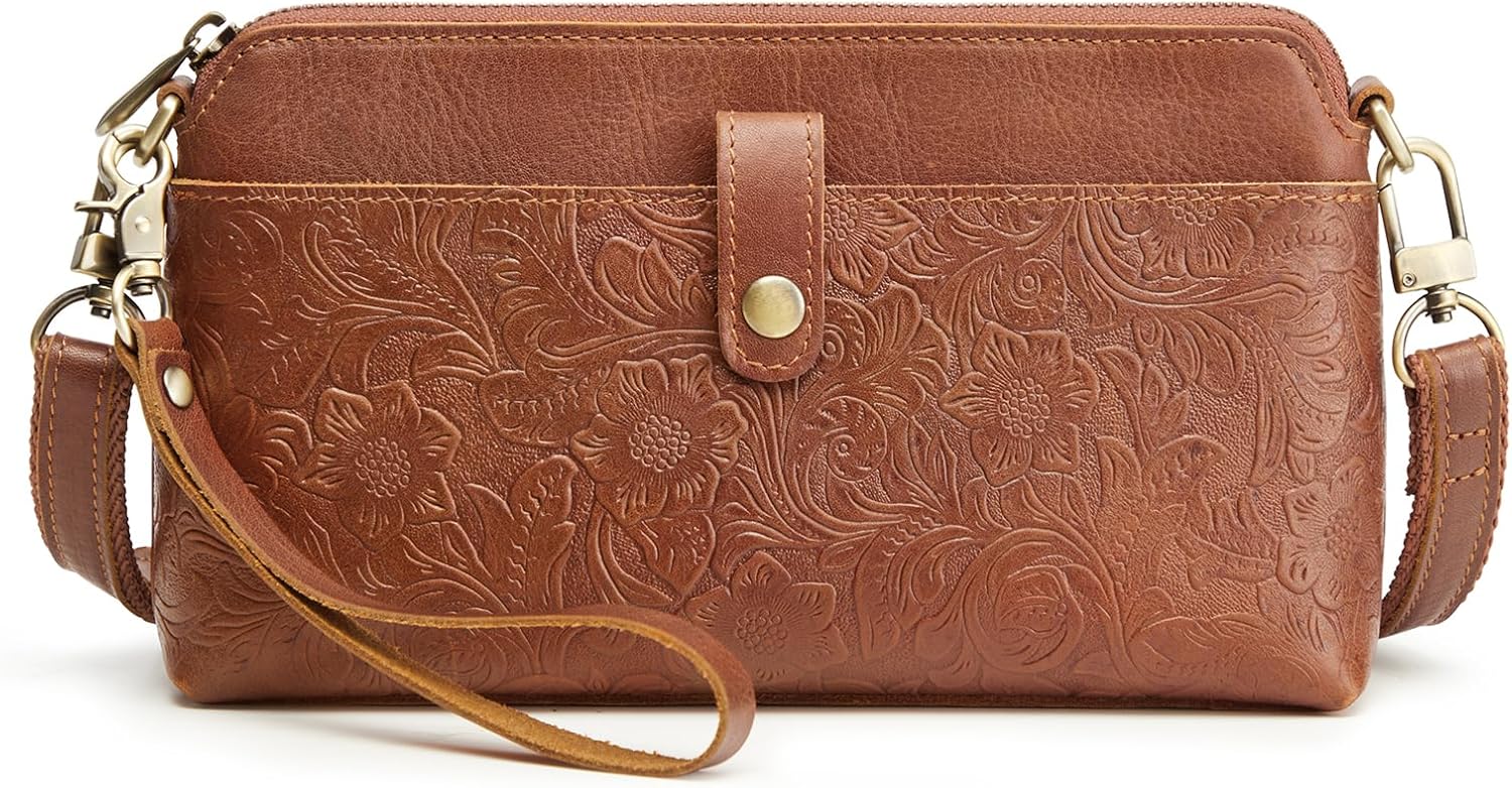 S-ZONE Leather Crossbody Bags for Women Small Bag Phone Purse RFID Blocking Clutch Purses Convertible Wristlet with 2 Straps