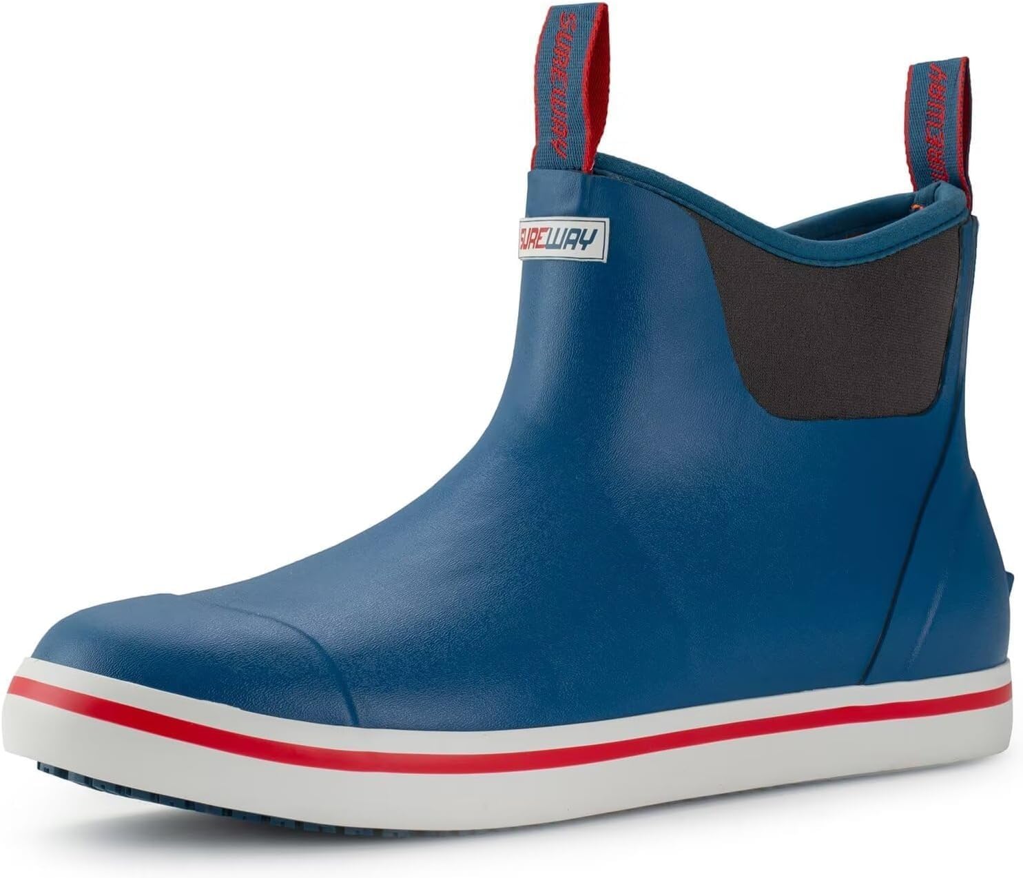 SUREWAY Men's Ankle Fishing Deck Boots for Men-Waterproof,Professional Non-Slip Soles for Wet Slippery Surface,Neoprene Rubber Rain Boot/Shoes for Hunting Boating Gardening