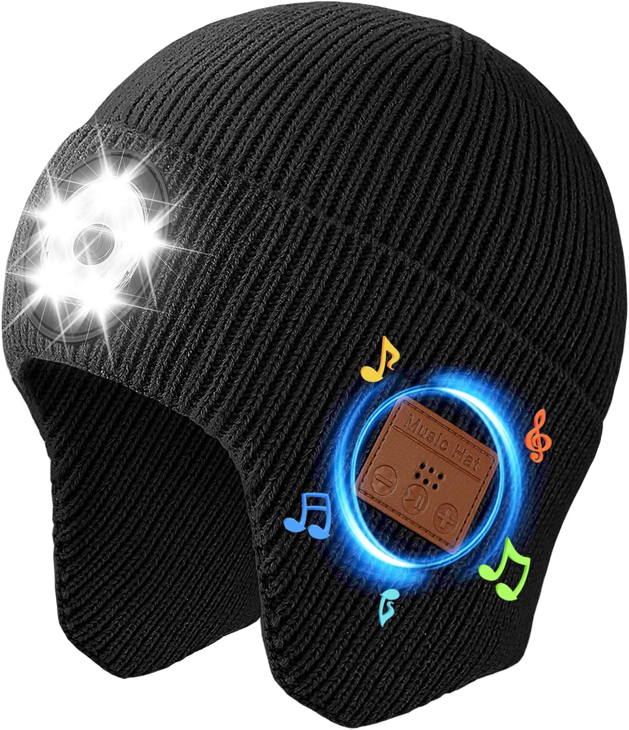 Atapeas Bluetooth Beanie Hat with Light, Rechargeable Wireless Beanie Cap Headlamp hat Music hat, Gifts for Men & Women