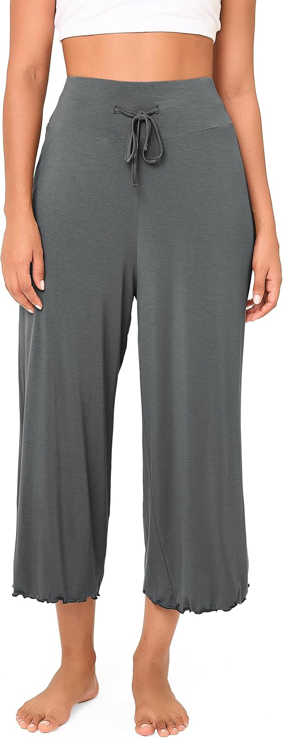 BAMBOO COOL Women Pajama Pants High Waisted Wide Leg Lounge Sleep Bottoms Light Weight Casual Yoga Capri Pants