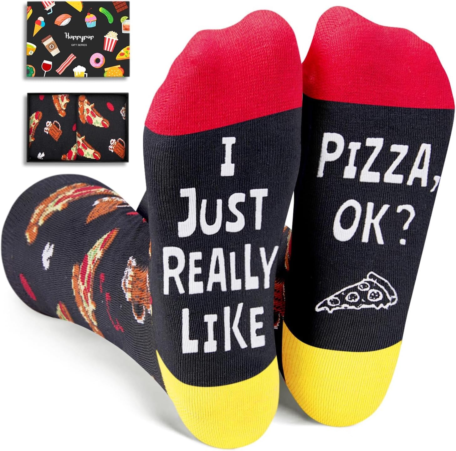 HAPPYPOP Food Socks for Men Women - Hamburger Taco Ramen Lover Gift, Teen Pizza Burger Socks
