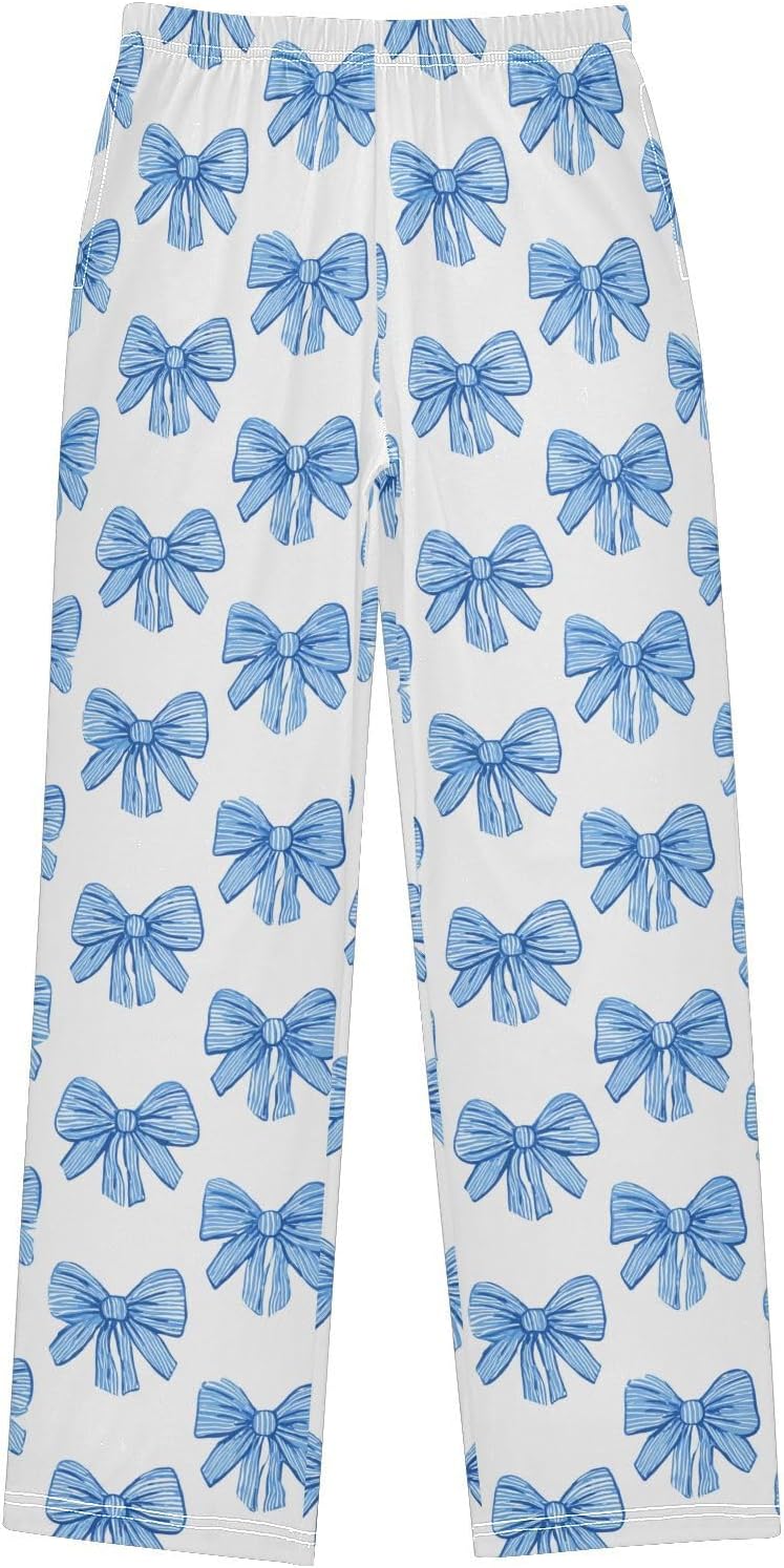 Pajama Bottoms, Cute Bows Pajamas Pant Sleep Long Pants Lounge Wear Elastic Waist Sleepwear Soft Pjs