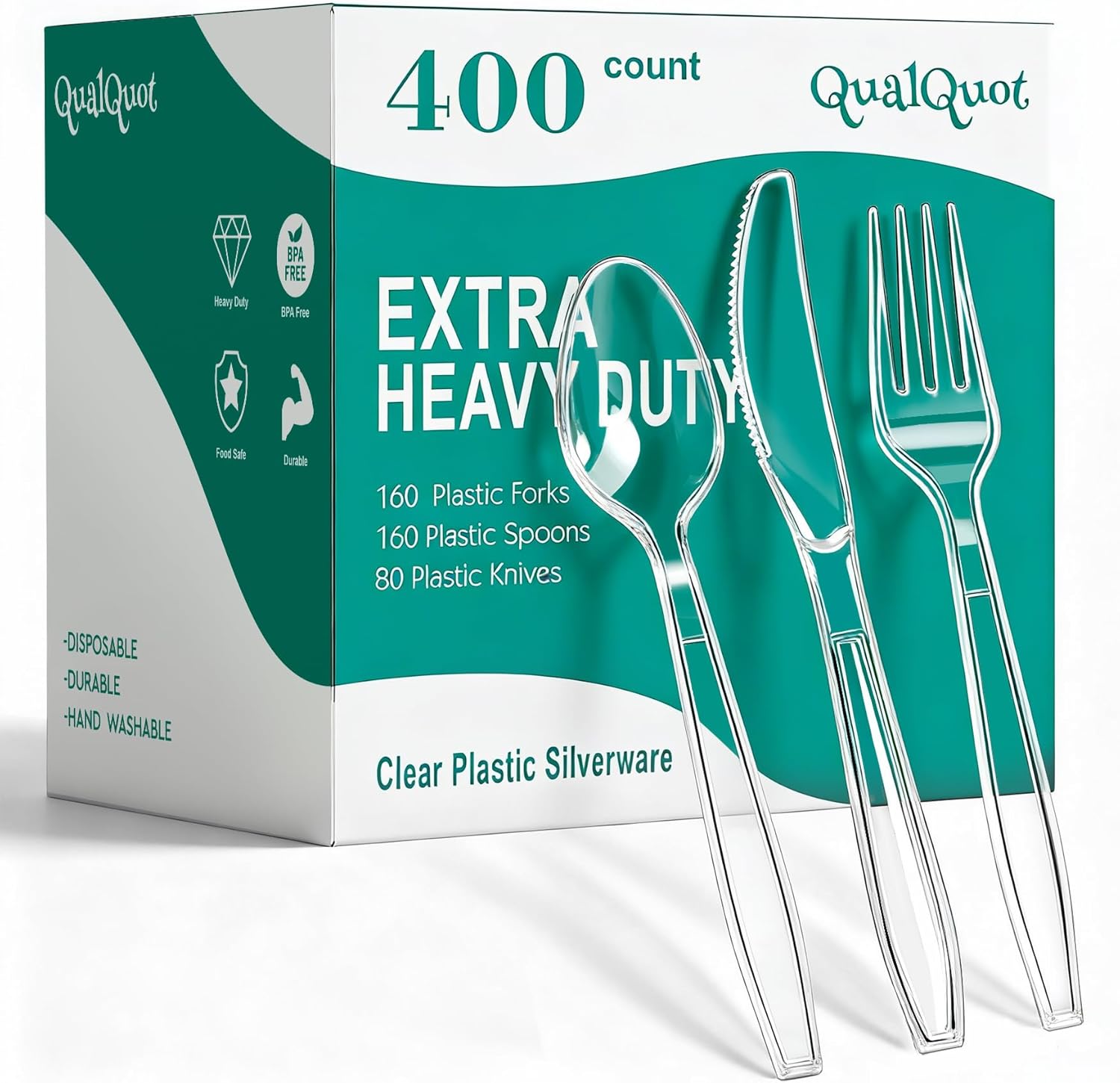 400 Count Clear Plastic Silverware, Extra Heavy Duty Plastic Utensils Set Includes 160 Forks, 160 Spoons and 80 Knives, BPA-Free and Heat Resistant Disposable Cutlery for Party and Daily Use
