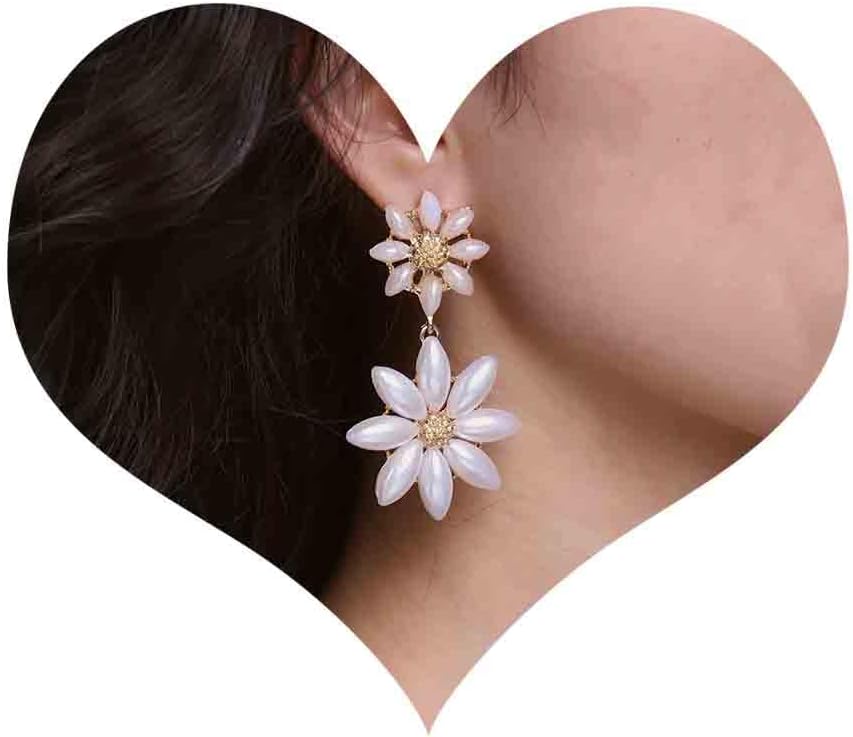 Vintage Flower Pearl Drop Earrings White Flower Dangle Earrings Large Flower Stud Earrings Pearl Wedding Flower Earrings Jewelry for Women