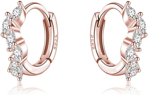 SLUYNZ 925 Sterling Silver Small Marquise CZ Earrings Hoop for Women Teens Teardrop Tiny CZ Huggie Earrings Leaf