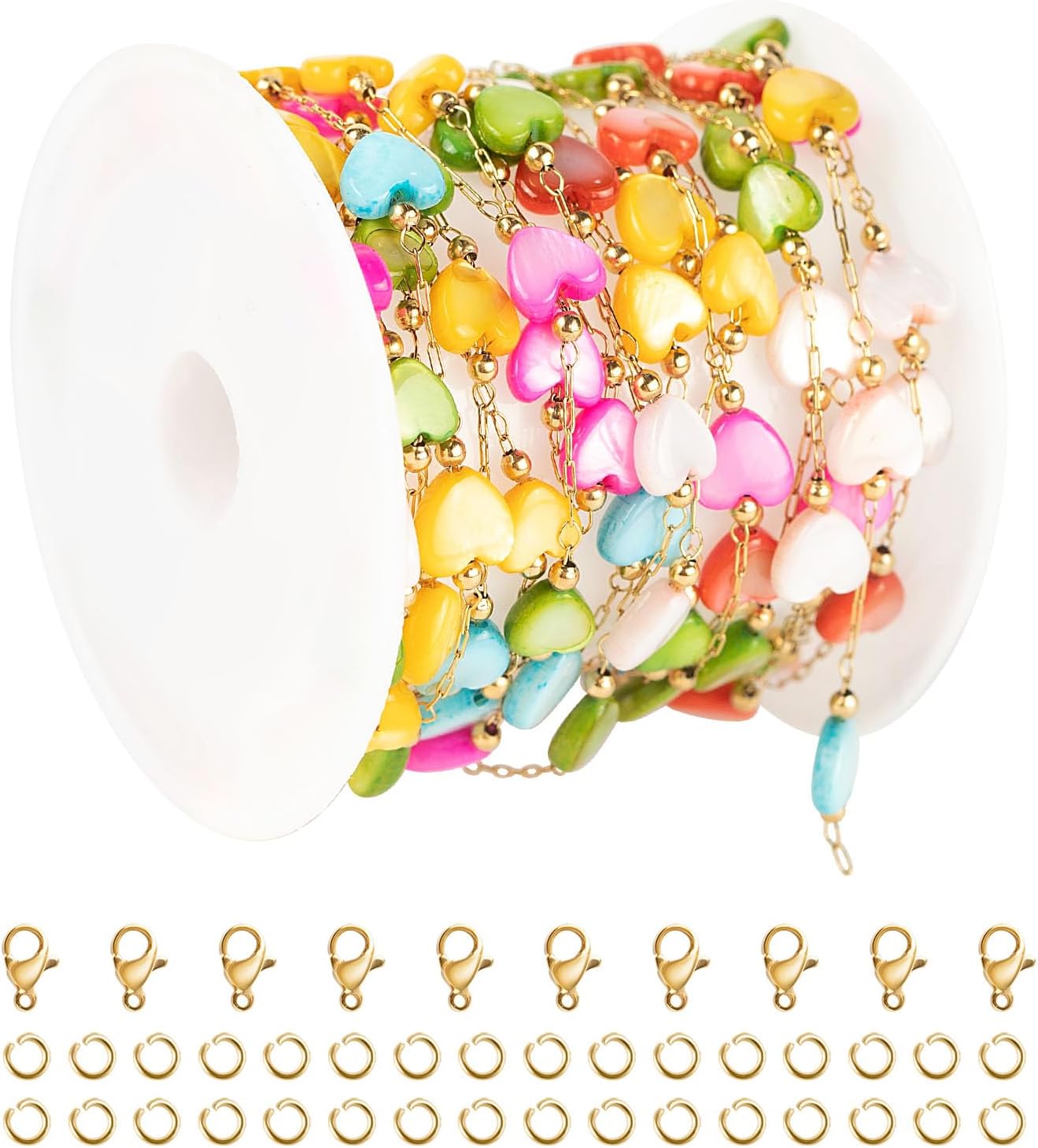 - Jewelry Chain Roll: You can get 6.6 feet colorful heart chains on a spool with 10pcs lobster clasps + 30pcs jump rings. It is convenient to use these jewelry supplies together with the heart chain for your bracelet necklace crafting.