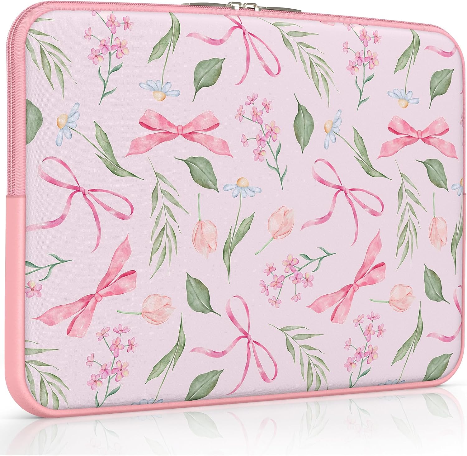 iCasso Laptop Sleeve 13 inch for MacBook Air 13-13.6 inch,Cute Laptop case for MacBook Pro 13 inch 14 inch, Slim Protective Travel Carrying Case Sleeve for 14 inch Chromebook, HP, Flower Bow Pink