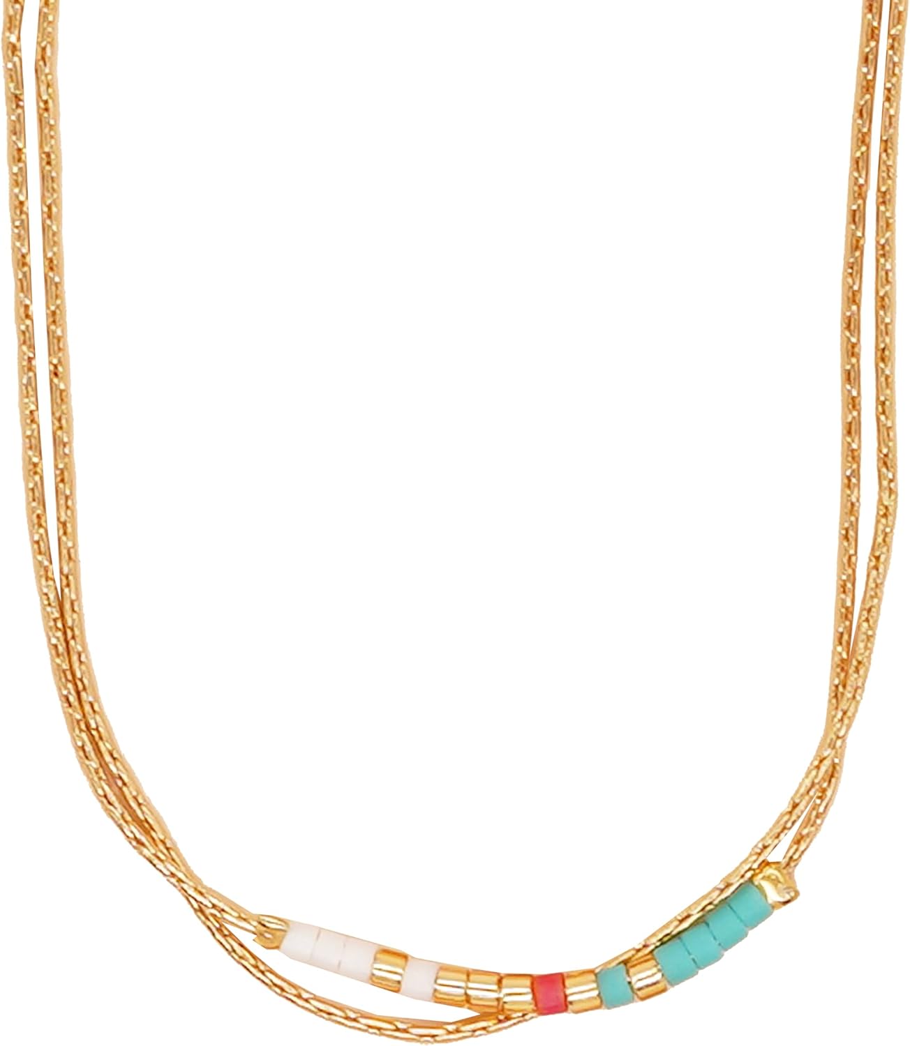 Sonateomber Gold Dainty Beaded Choker Necklaces for Women, Simple Handmade Colorful Layered Seed Beads Chain Necklace Summer Beach Bohemian Jewelry Gift