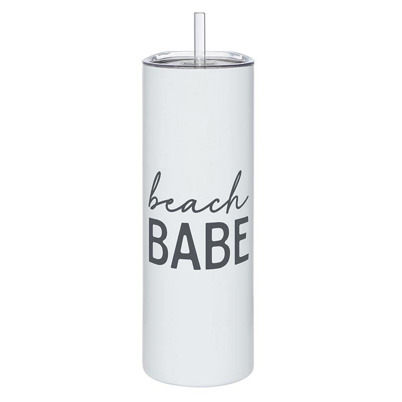 - WHITE TUMBLER Reads "Beach Babe" in black print