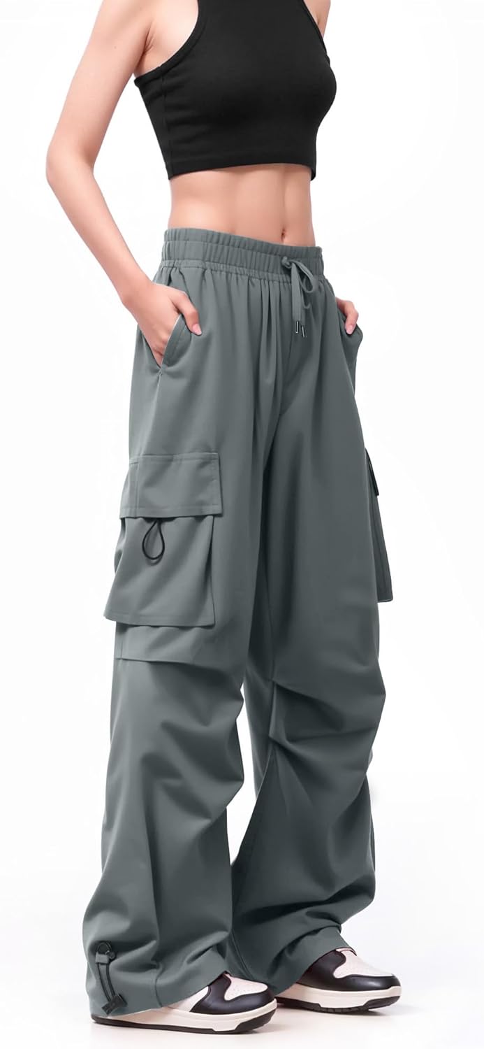 Cargo Pants Women Baggy High Waisted Parachute Pants with Pockets Wide Leg Y2K Casual Pants for Women