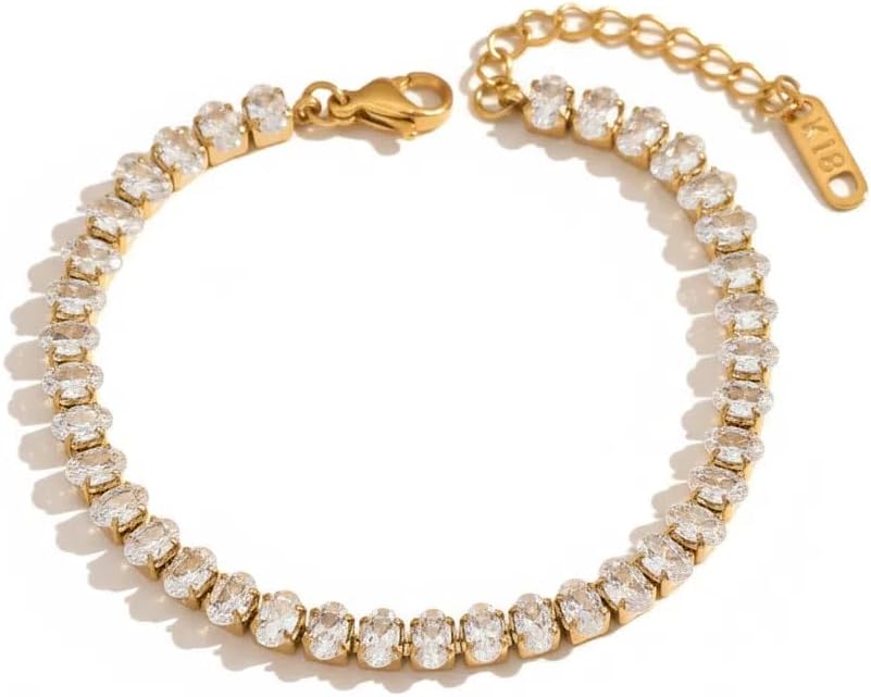 Tennis Bracelet for Women 5.9-7.1 Inch,18K Gold Plated with Red Green Black White Cubic Zirconia, Dainty Inlaid Chain, Minimalist Everyday Stackable Jewelry Gift